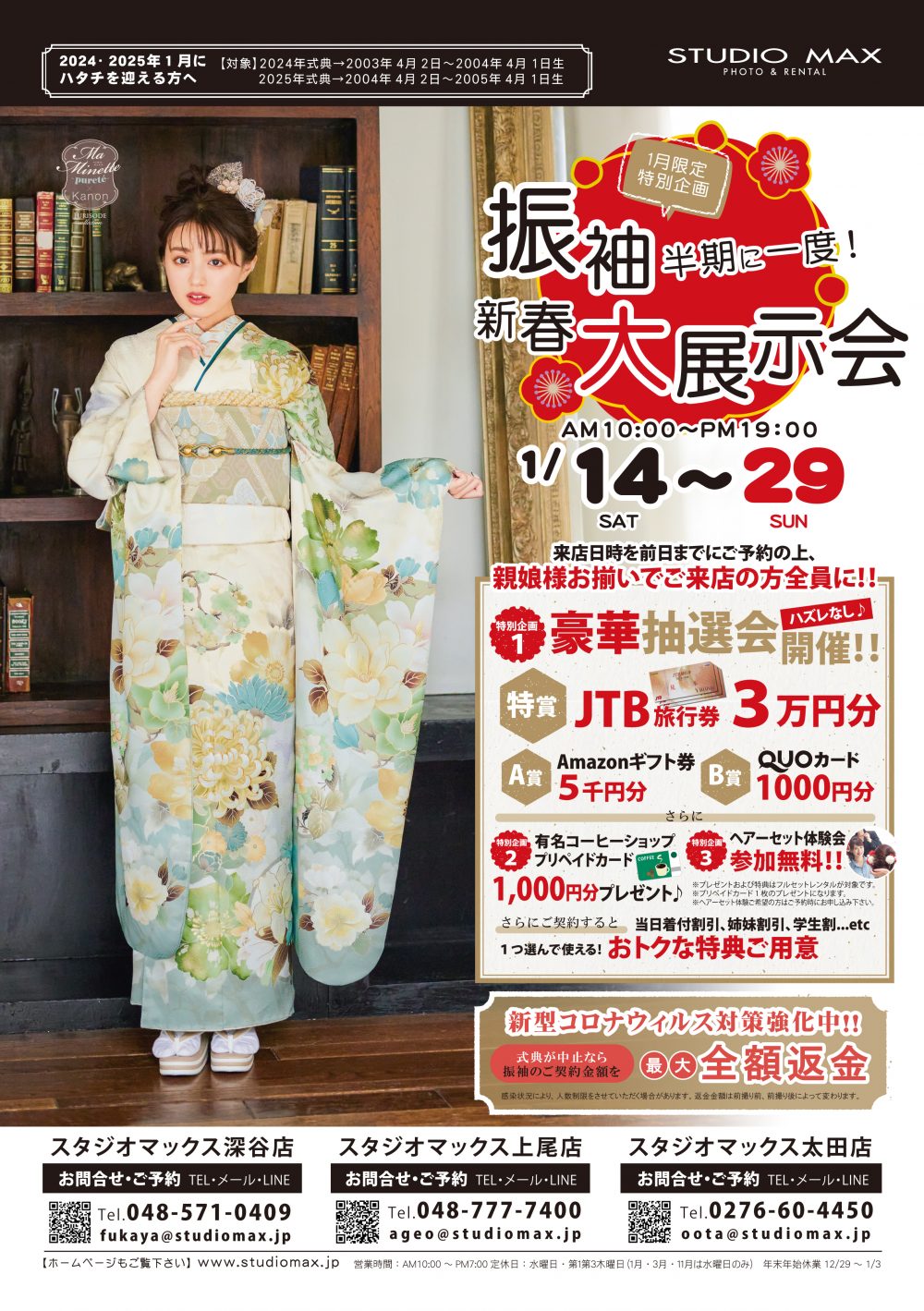 ⚘⚘⚘1/14~1/29にスタジオマックス全店で1年に1度の振袖大展示会を開催します⚘⚘⚘