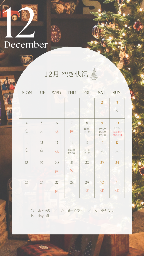 2023.12.3 スタッフブログYoutube深谷店ブライダル成人式男袴七五三お宮参り ■深谷店■11月&12月更新の空き状況■ 最新のお知らせや情報は▷▷ココ◁◁をチェック! こんにちは、深谷店です☺ . . . . 12月の中旬までの空き状況です♡ 予約状況は日によって変動しますので 御急ぎの方はお電話でのお問い合わせが最適です? . . . ――――――――――――――――――― 各種お問合せ先はコチラをタップ? ?…■LINE■…? ?…■mail■…? ────────────────── 深谷店Instagram毎日更新中✨ check it now★ ────────────────── 振袖レンタルや七五三撮影、結婚写真の撮影ができる写真館を探している方、ぜひ埼玉県深谷市にある写真館スタジオマックス深谷店へお気軽にお問い合わせください。 【会社名】スタジオマックス深谷店 【郵便番号】〒366-0824 【住所】埼玉県深谷市西島町3-3-11 MAXビル1F~2F 【電話番号】048-571-0409 【HP】www.studiomax.jp ────────────────── 前の記事へ 一覧へ 次の記事へ