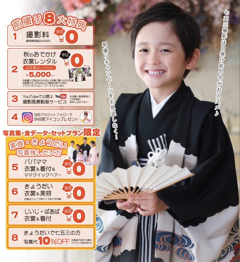 2024.4.27 スタッフブログYoutube太田店七五三 ☆太田店☆七五三キャンペーンやってます☆ ☛最新情報はこちらをチェック☚ ・ ・ こんにちは スタジオマックス太田店です☺ 本日は… _ 5月の新キャンペーン発表! . . 通常¥3,300の撮影料が !無料! . パパママ着物&着付けが撮影時 !無料! . 祖父母様着物&着付けが撮影時 !無料! . このキャンペーンは五月いっぱいで終了しちゃいます? ゴールデンウイーク中でも 追加料金はいただきません✨ . 六月以降のキャンペーンは 無料になるものが限られてきます…? ぜひぜひお得に撮影しちゃお? . . ーーーーーーーーーーーーーーーーーーーーー 各種お問い合わせ先はこちらをタップ↓↓ ★LINE★ ★メール★ 太田店インスタグラムはこちらから♡ ★Instagram★ ーーーーーーーーーーーーーーーーーーーーー 振袖レンタルや七五三撮影、結婚写真の撮影ができる写真館を探している方、ぜひ群馬県太田市にある写真館、スタジオマックス太田店へお気軽にお問い合わせください。 【会社名】スタジオマックス太田店 【郵便番号】〒373-0852 【住所】群馬県太田市新井町221-3 【電話番号】0276-60-4450 【HP】www.studiomax.jp 前の記事へ 一覧へ 次の記事へ