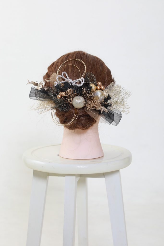写真の飾りは最新のドライフラワー系髪飾り 😳