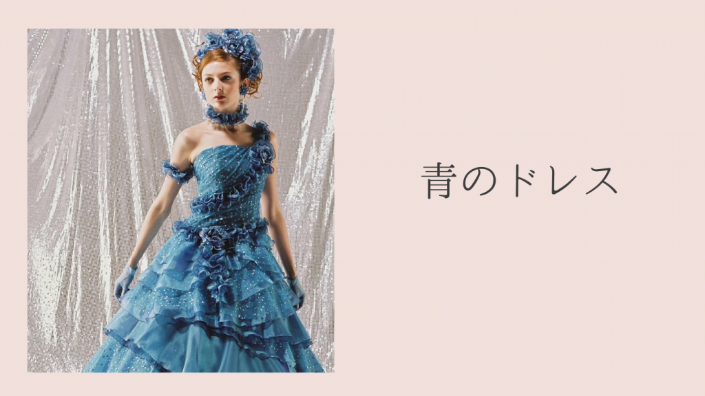 青色のドレスには、【清らか】や【純潔】、【平和】、【安全】といった多くの意味が込められております。