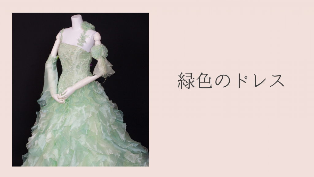 緑色のドレスには【思いやり】や【清楚】、【優しさ】など素敵な意味が込められています。