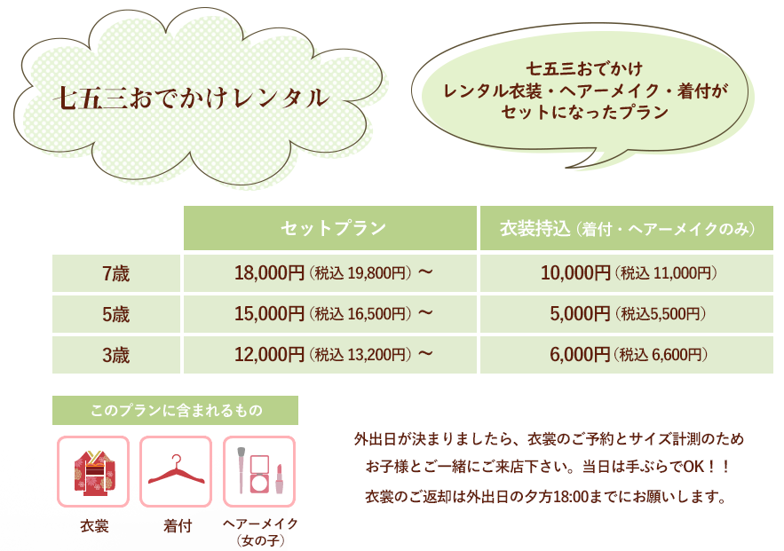 お参り日が未定の場合には着物レンタルのご予約を致しかねますので予めお願い申し上げます。