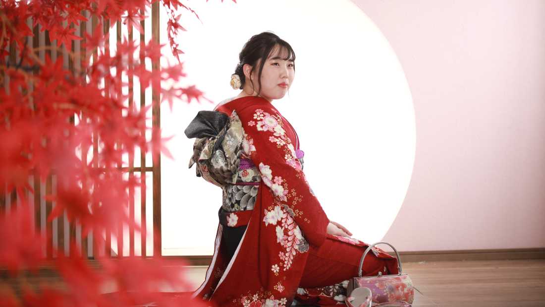 赤い振袖を着ている女性