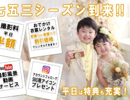 2025年七五三キャンペーン第4弾!!(^▽^)/ キャンペーン内容は『撮影料 平日半額』や『前撮りor後撮りで秋のお出かけ衣裳レンタル割引!』『当店のインス .....
