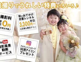 2025年七五三早撮りキャンペーン第3弾、ご好評につき延長決定!!(^▽^)/ キャンペーン内容は『撮影料 平日0円』や『秋のお出かけ衣裳レンタル平日3,30 .....