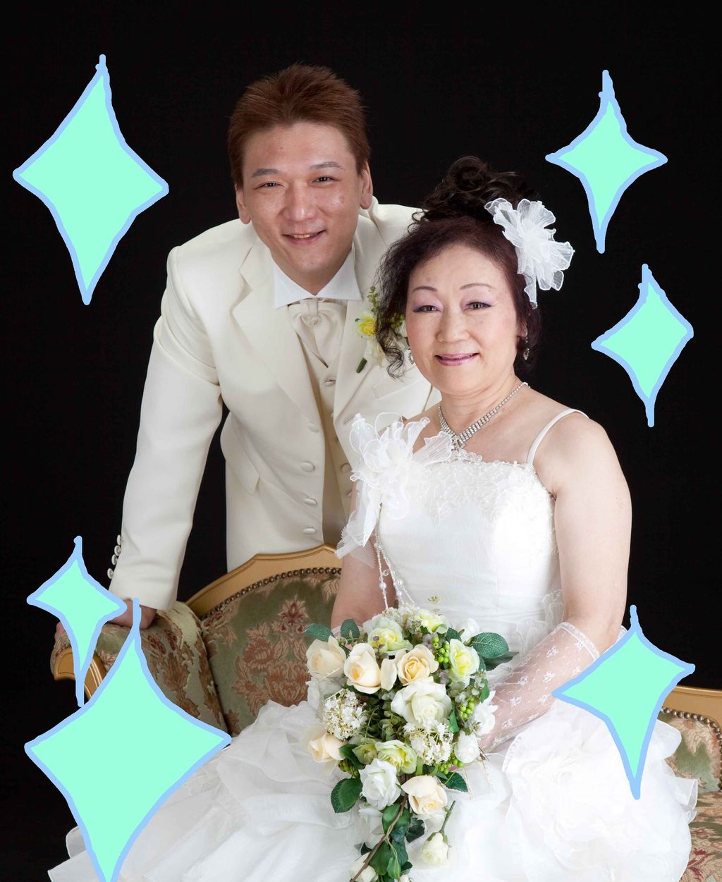 お母様とドレスとタキシードで撮るのは照れくさそうでしたが、