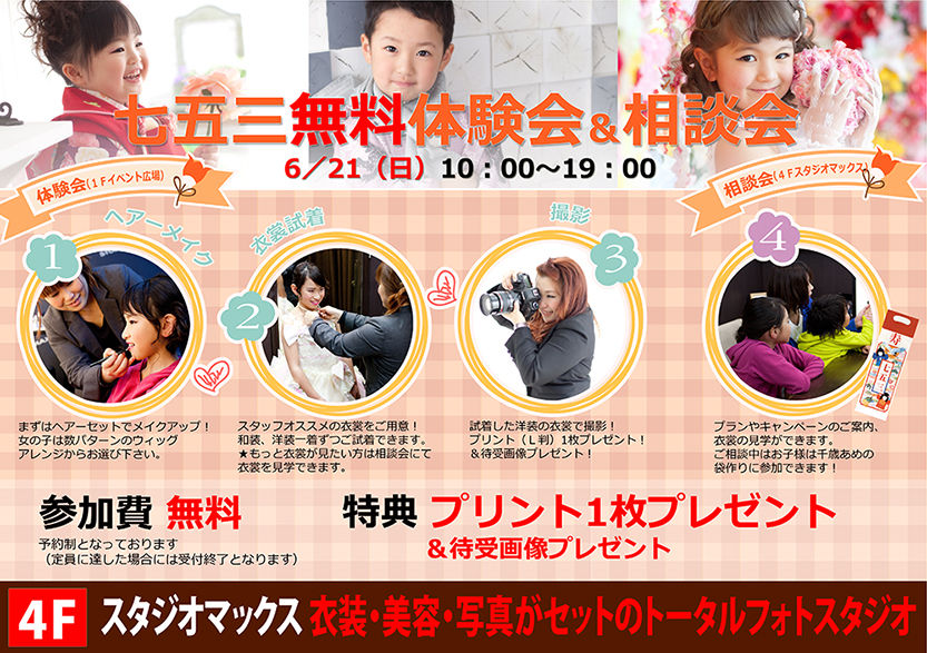 6/21(日) 1F イベント広場にて、七五三体験会を開催します