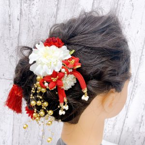 小さい髪飾りをたくさん持って来て下さればこのように色々な付け方でご提案しちゃいます(*’▽’)