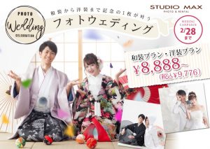 2022.2.7 スタッフブログブライダル太田店 ☆太田店☆ブライダル撮影プランのご紹介 こんにちは♪ スタジオマックス太田店です☆彡 ・ ・ 本日はブライダル撮影プランをご紹介致します!! ・ ・ 洋装プラン・和装プランが平日限定¥9776~でとってもお得です♪ 期間限定のお得なセットプランもございますのでこの機会に是非!! ・ ・ ・ ・ ☆詳細はこちらから☆ ・ ・ ーーーーーーーーーーーーーーーーーーーーー 各種お問い合わせ先はこちらをタップ↓↓ ★LINE★ ★メール★ 太田店インスタグラムはこちらから♡ ★Instagram★ ーーーーーーーーーーーーーーーーーーーーー 振袖レンタルや七五三撮影、結婚写真の撮影ができる写真館を探している方、ぜひ群馬県太田市にある写真館、スタジオマックス太田店へお気軽にお問い合わせください。 【会社名】スタジオマックス太田店 【郵便番号】〒373-0852 【住所】群馬県太田市新井町221-3 【電話番号】0276-60-4450 【HP】www.studiomax.jp 前の記事へ 一覧へ 次の記事へ