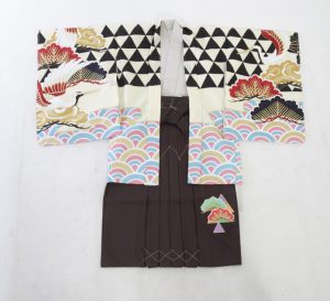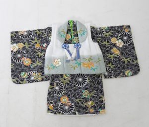 赤い花がポイントになっているレトロな雰囲気のお着物です!