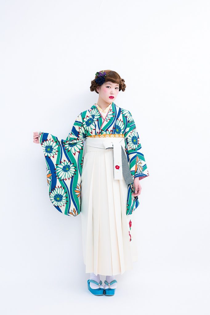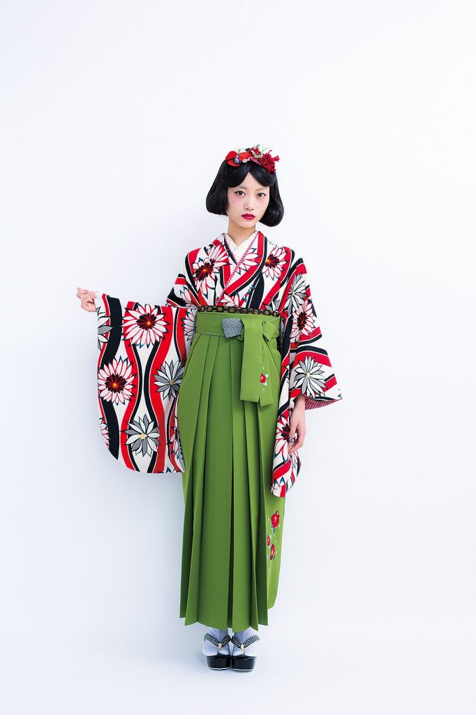 水玉柄ビビットカラーの卒業袴 グリーン×ホワイトの卒業袴 赤×白の卒業袴