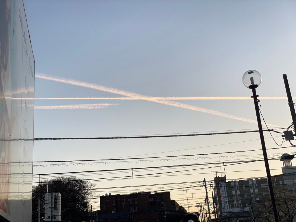 ふと、空を見上げたら飛行機雲がクロスしてました!!!!