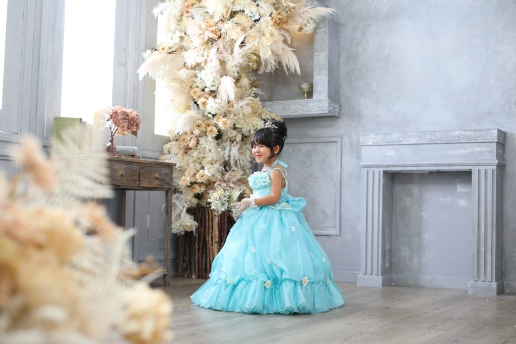 水色が大好きでお着物もドレスも両方水色にしました!!!
