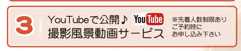 前撮り撮影の方限定&ご希望の方には撮影中の動画をスタッフが撮影させていただき~3分程度の動画に編集してYouTubeでご覧いただけるサービスを展開中!