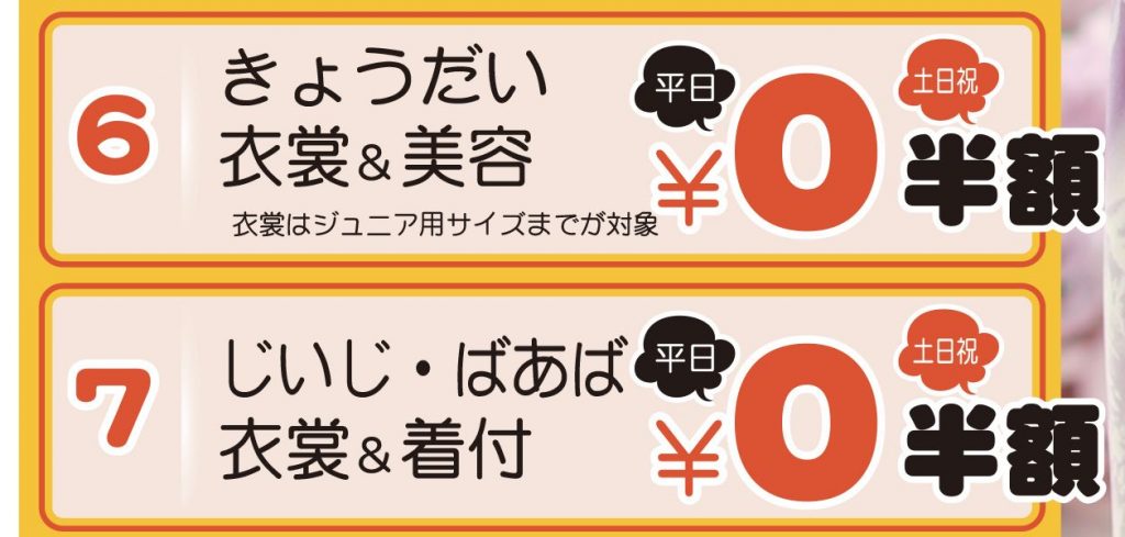 こちらも平日前撮り撮影で無料!土日祝日でも半額の¥3,300。