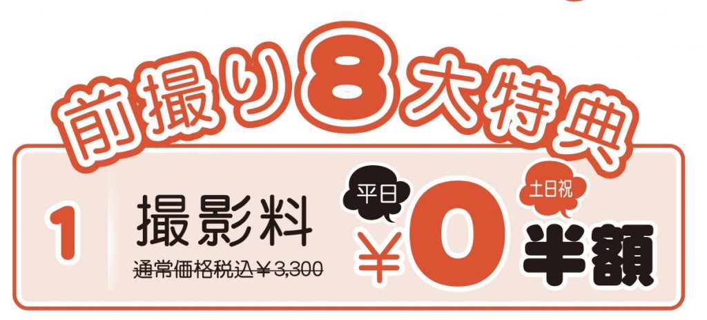 通常価格¥3,300が平日前撮りで無料!土日祝日で¥1,650!