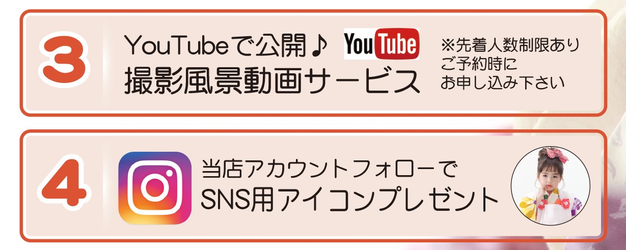 七五三前撮り撮影でご購入いただいたお写真の中から、1枚好きな画像をSNS用アイコン画像としてプレゼントさせていただいております。