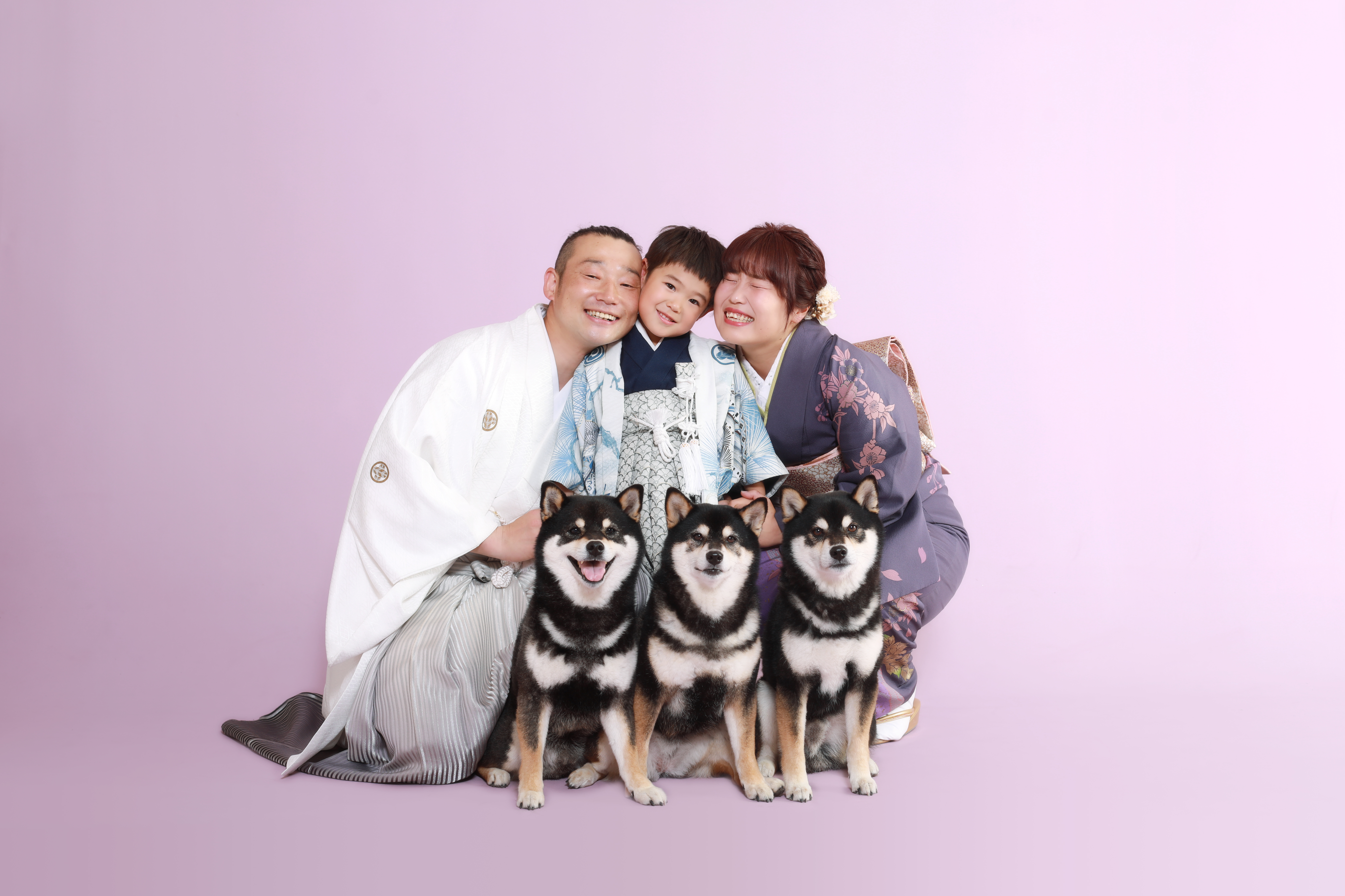 上尾店のお客様では、ご家族写真を着物で撮影しきょうだいの写真では洋装(ドレス・タキシード)を着て七五三前撮り撮影をする方が増えています。