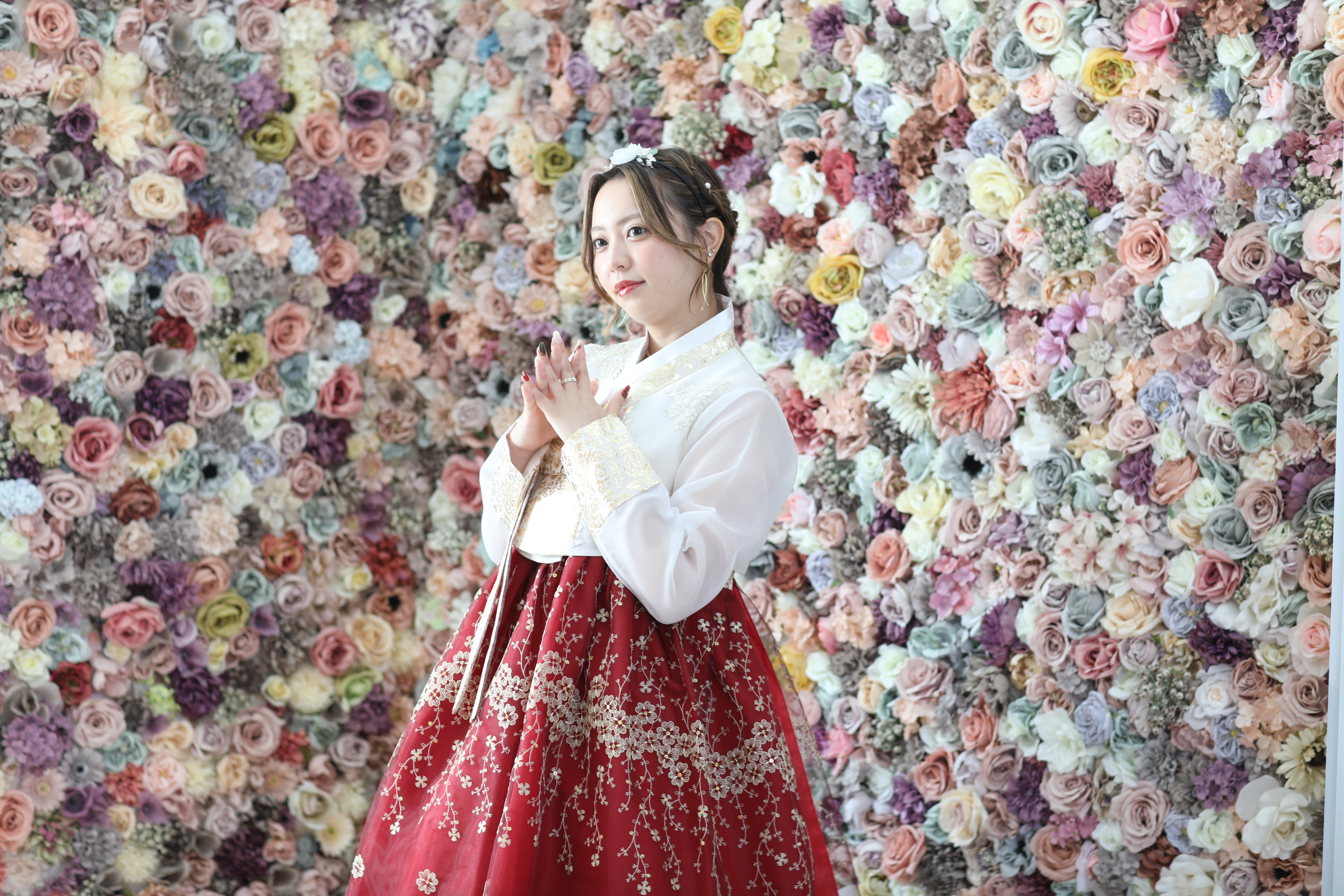 今回はAMIさんの豪華なデザインの可愛いチマチョゴリと深谷店の大人っぽく上品な濃い緑の振袖を着てオシャレに大変身!
