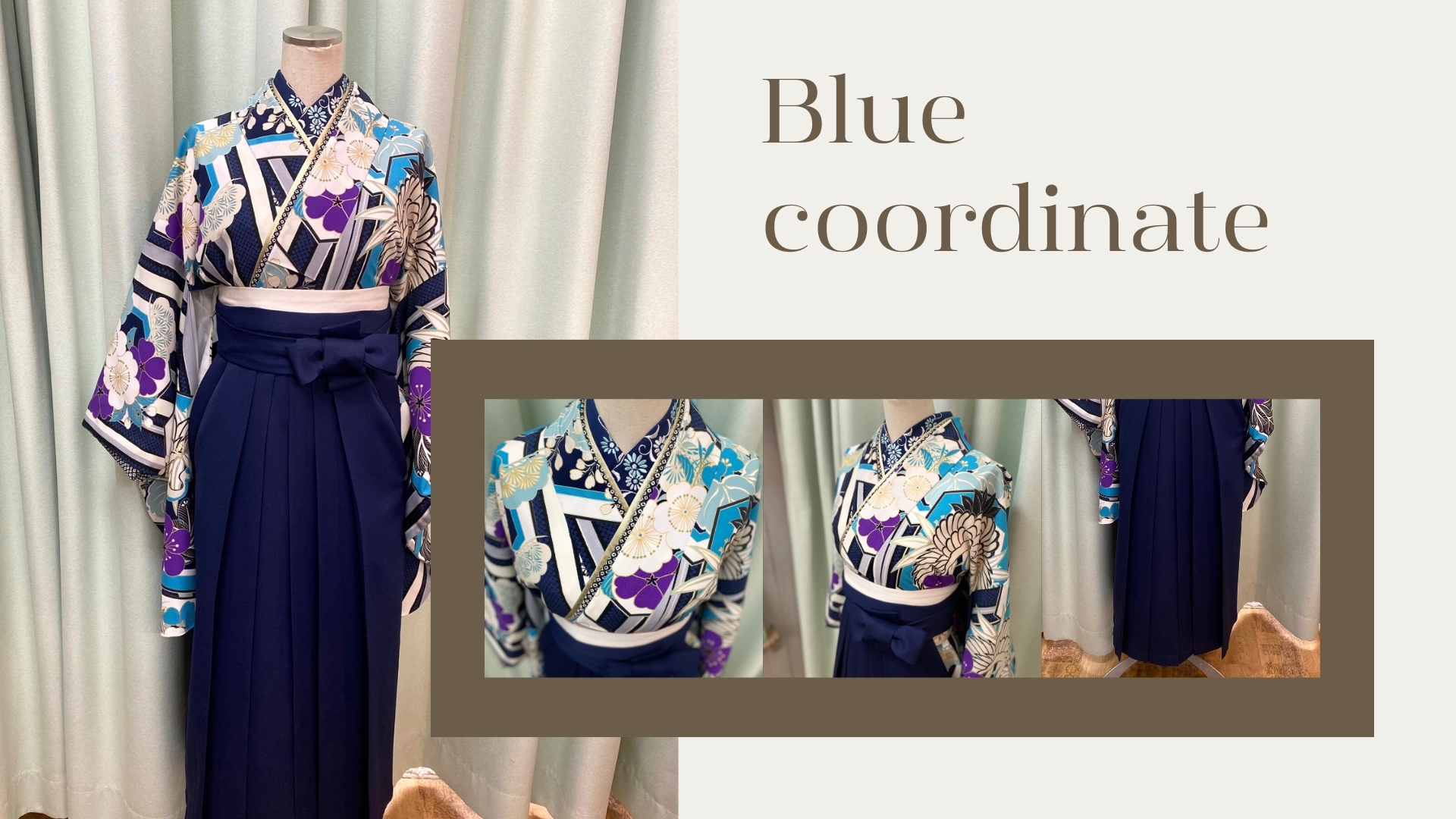四着目の卒業袴は青系のメンバーカラーのベース担当をイメージしてコーディネートコーディネートしました。