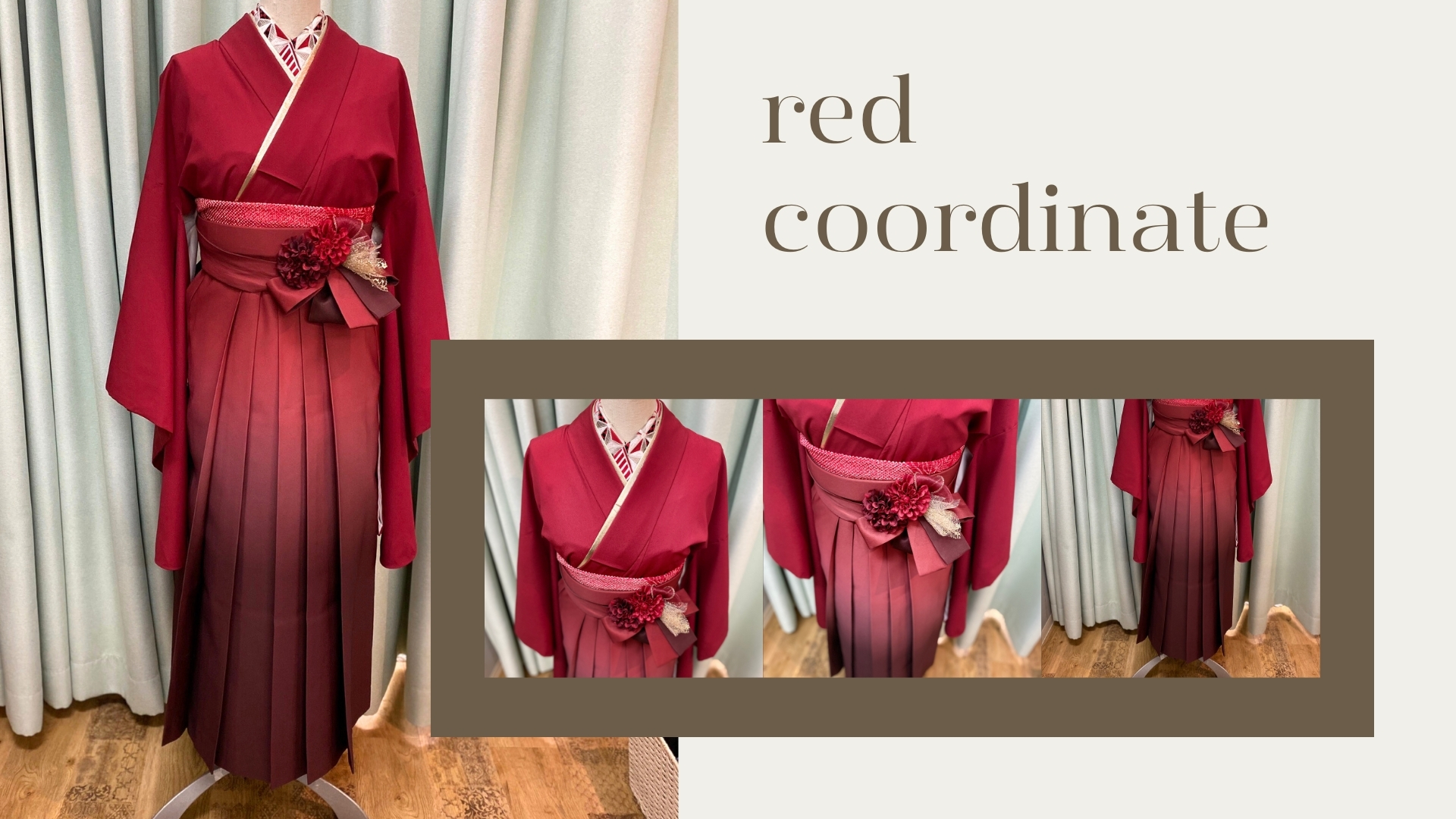 無地の赤色の着物はどの袴にも合わせやすいのでメンバーカラーが赤の推しを持つお嬢様には赤の無地着物がおススメです♡