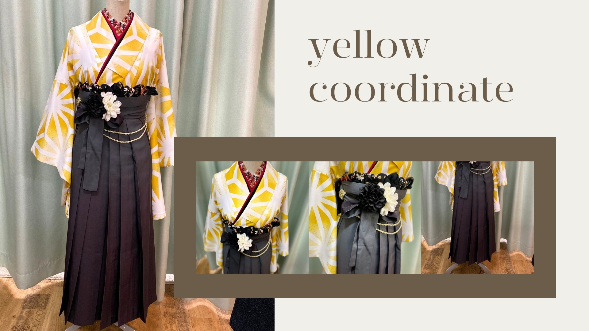 黄色だけだと野暮ったい印象になる卒業袴も少しのアレンジで推し袴へ返信できます◎