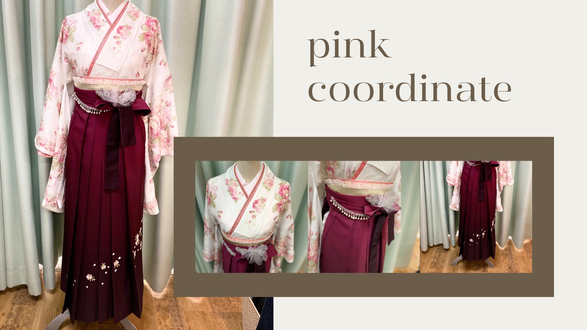 ラストの卒業袴はピンクのメンバーカラー、ドラム担当のコーディネートです*+