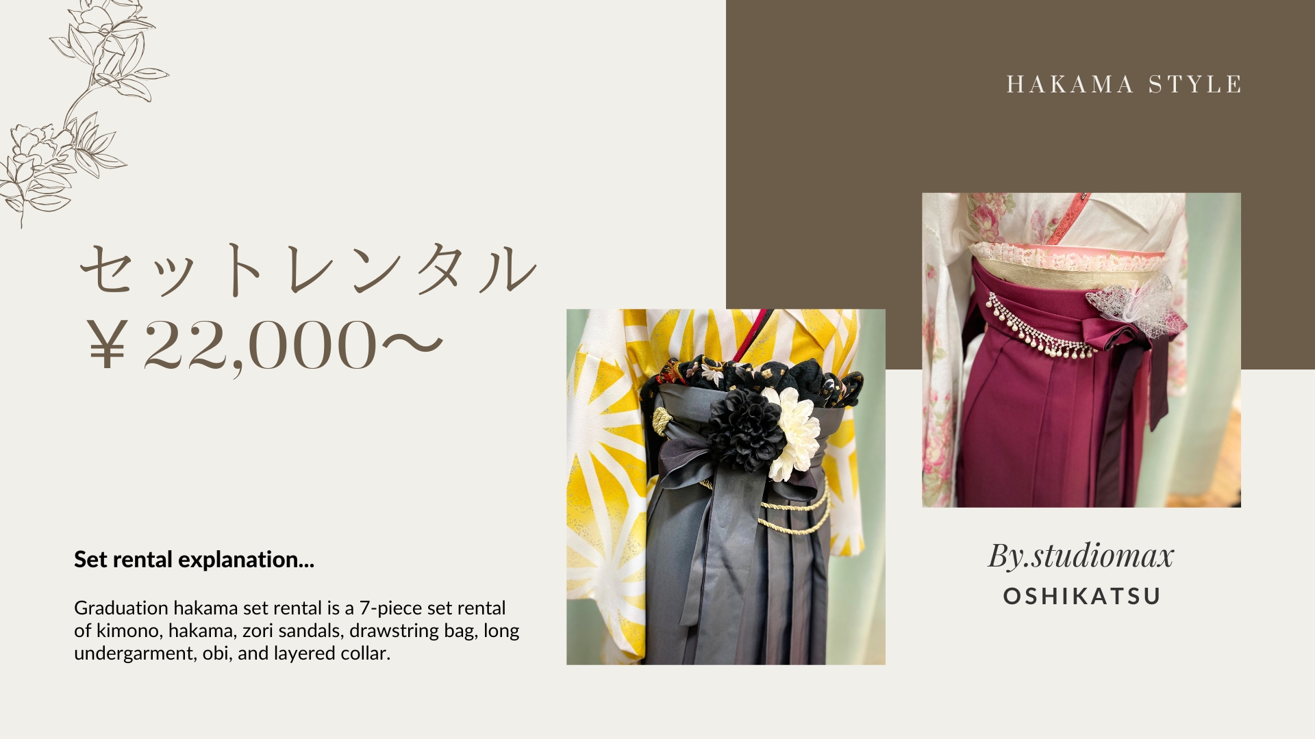太田店の卒業袴のセットレンタルは以下の7点のセットレンタルです。