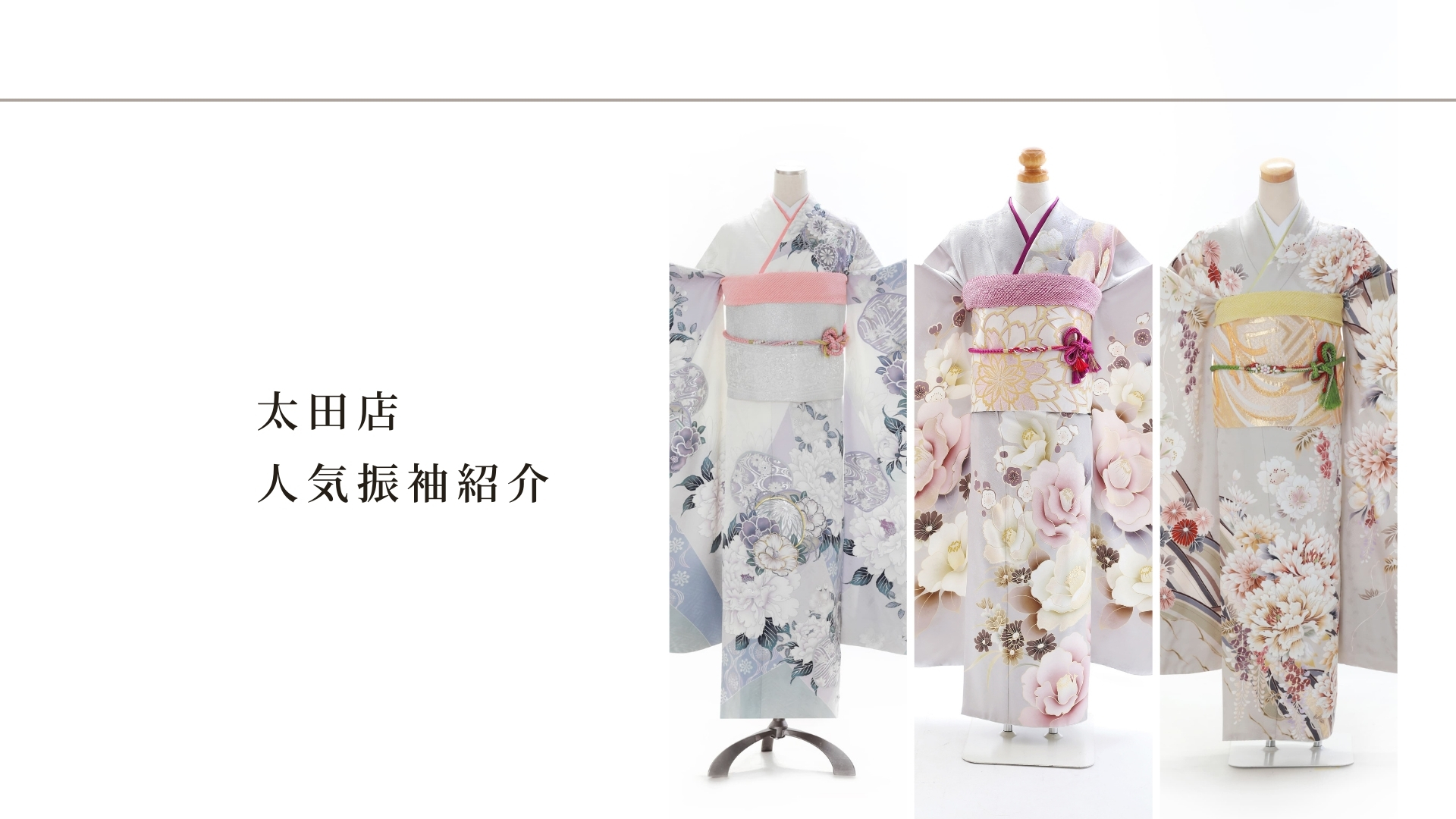 太田店オススメの試着率NO.1の振袖紹介!今期人気のくすみカラー、ホワイトカラーの振袖を中心に紹介していきます。
