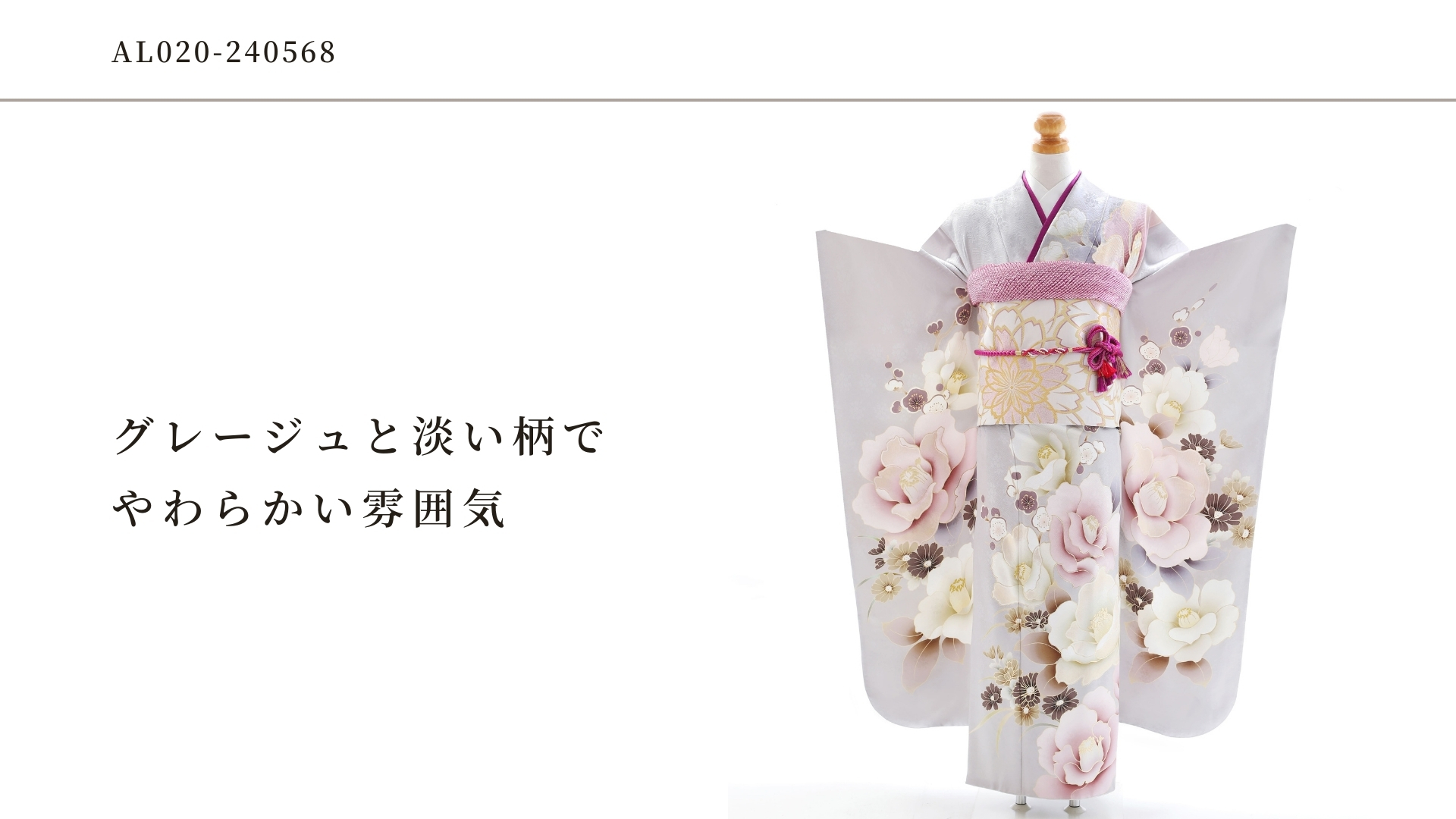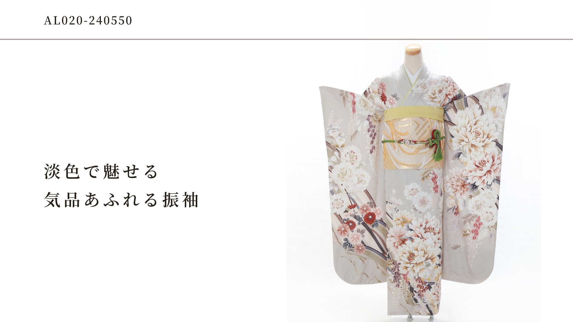 三着めの振袖もベースカラーは先程と少しにたグレージュ系。