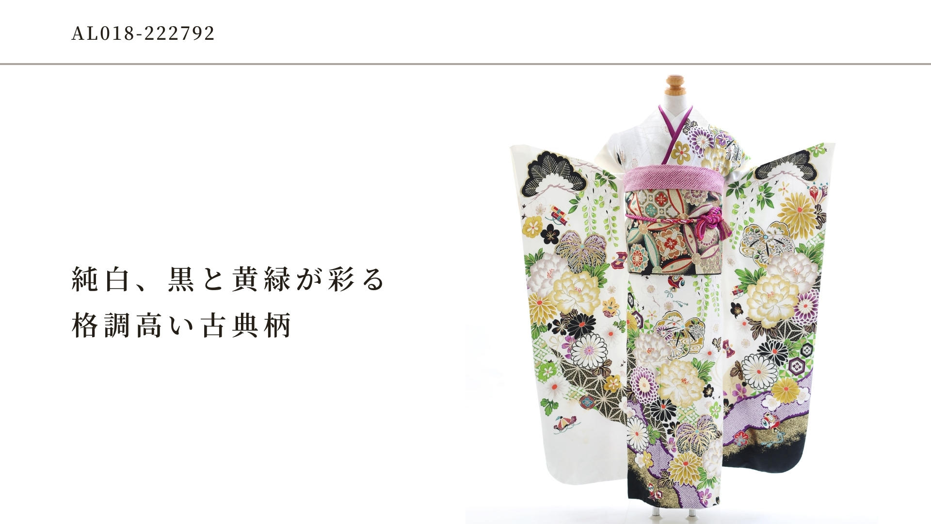 メインの花が両方とも高貴や豪華さをイメージしていますが、柄・振袖カラーが原色などの派手めの配色ではないのでより上品に着こなる一着となっています。