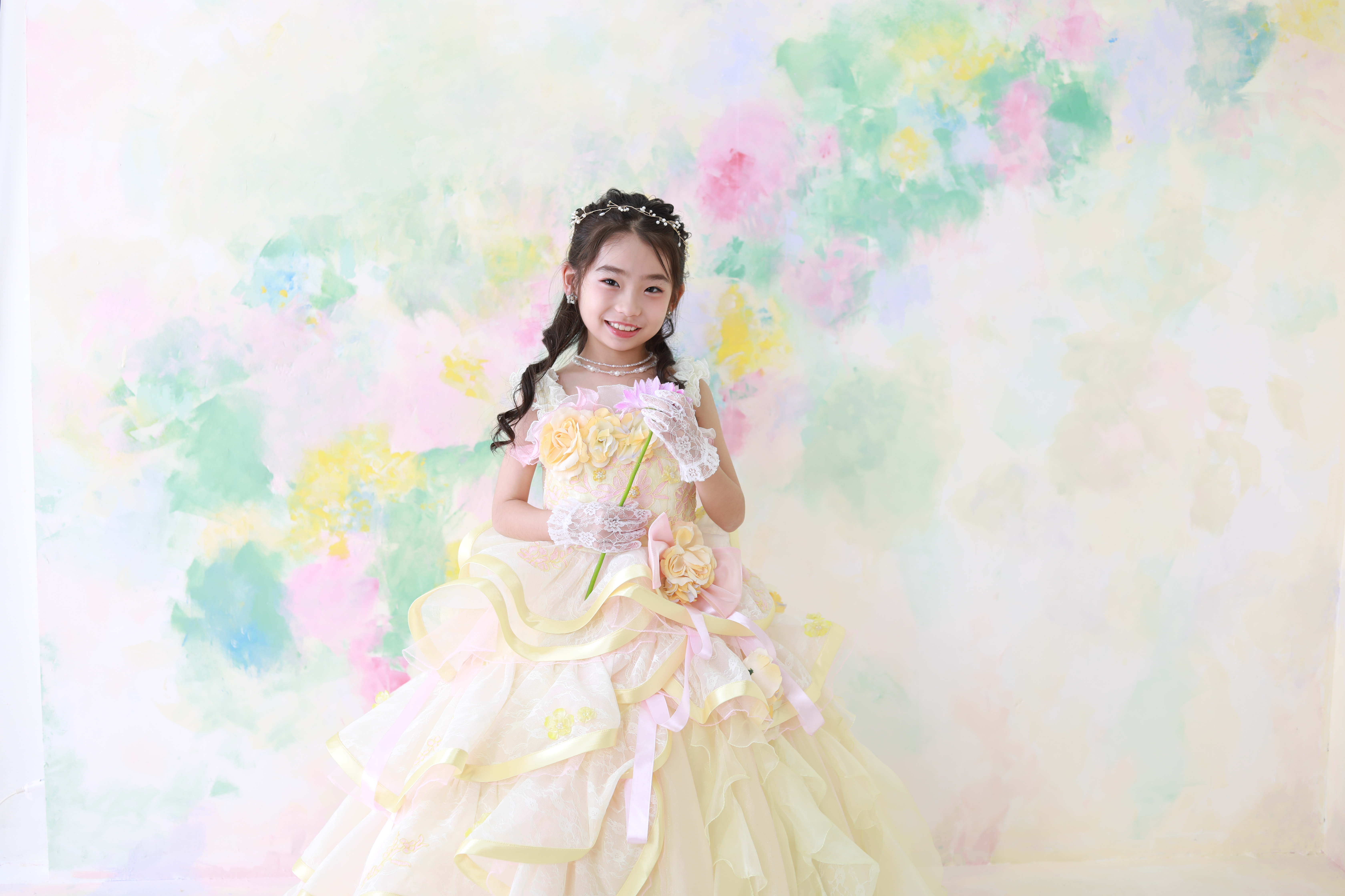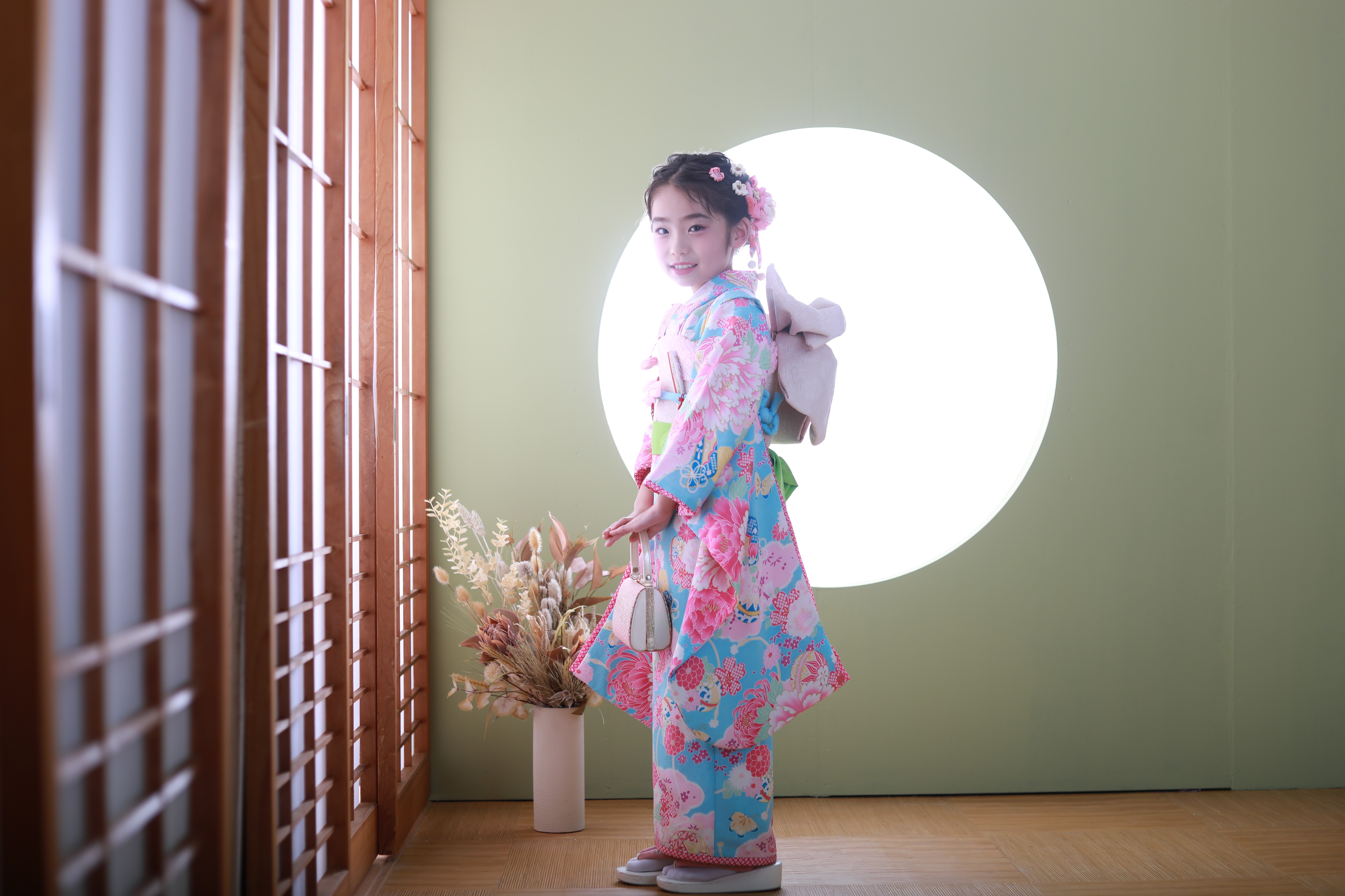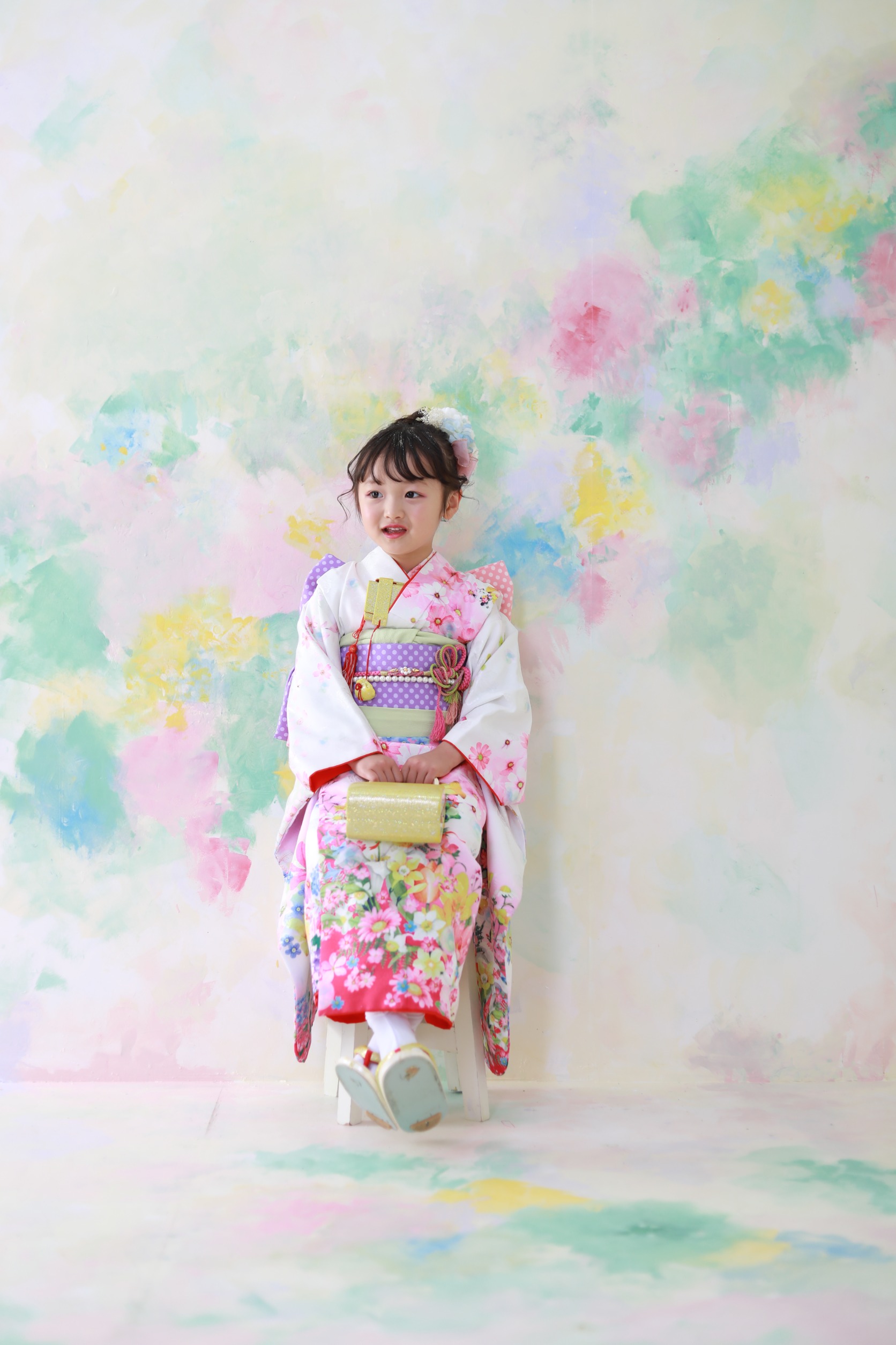 優しい色使いのセット背景なので今流行りのくすみカラーや淡いカラーの衣裳は洋装・和装問わずよく合いますよ。
