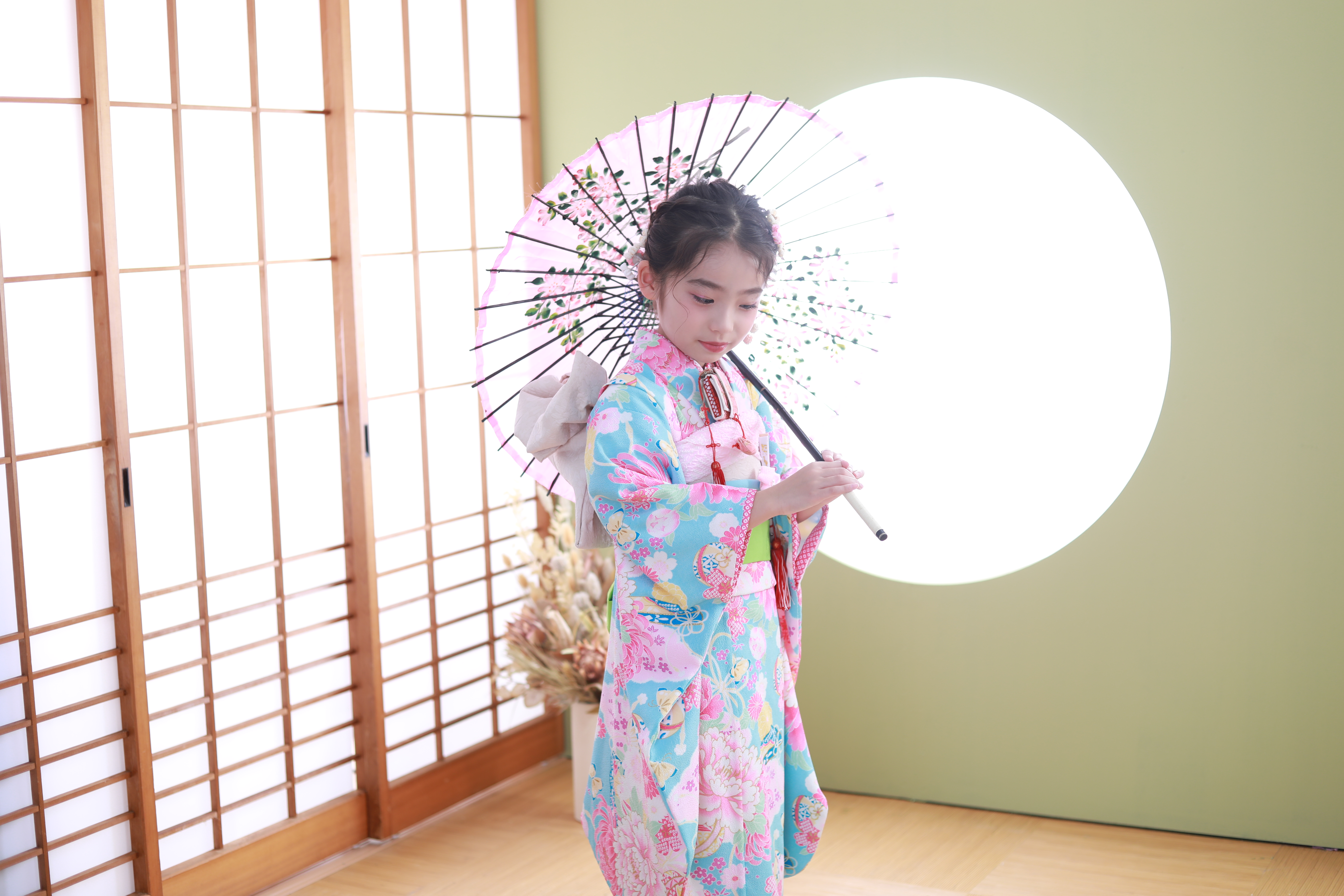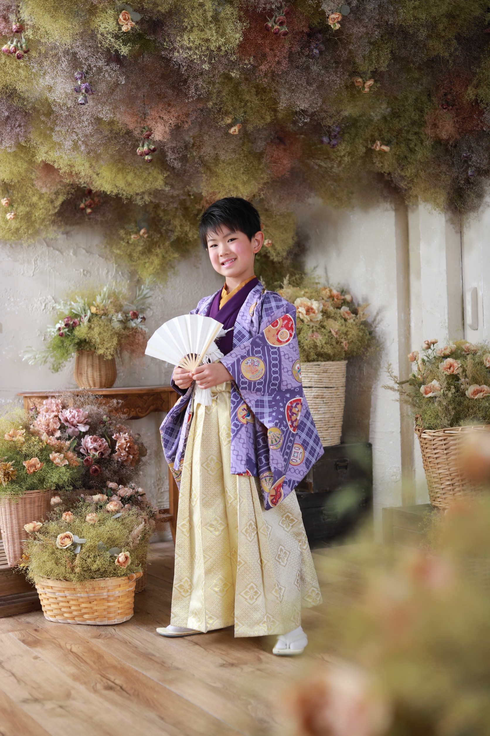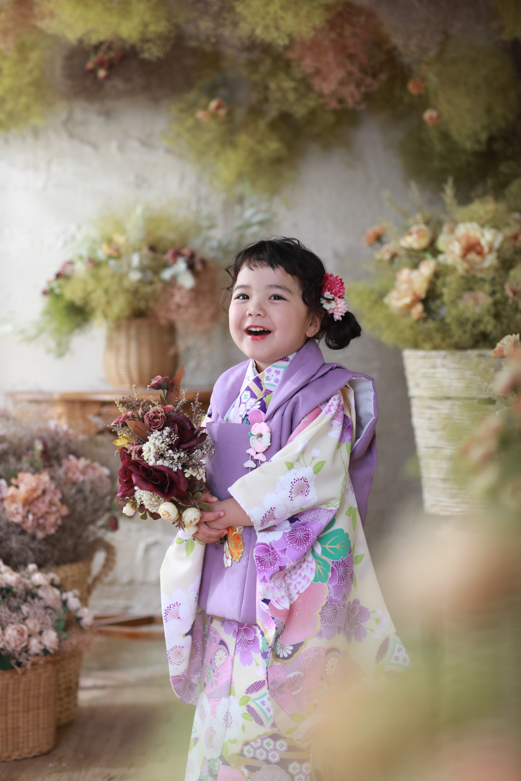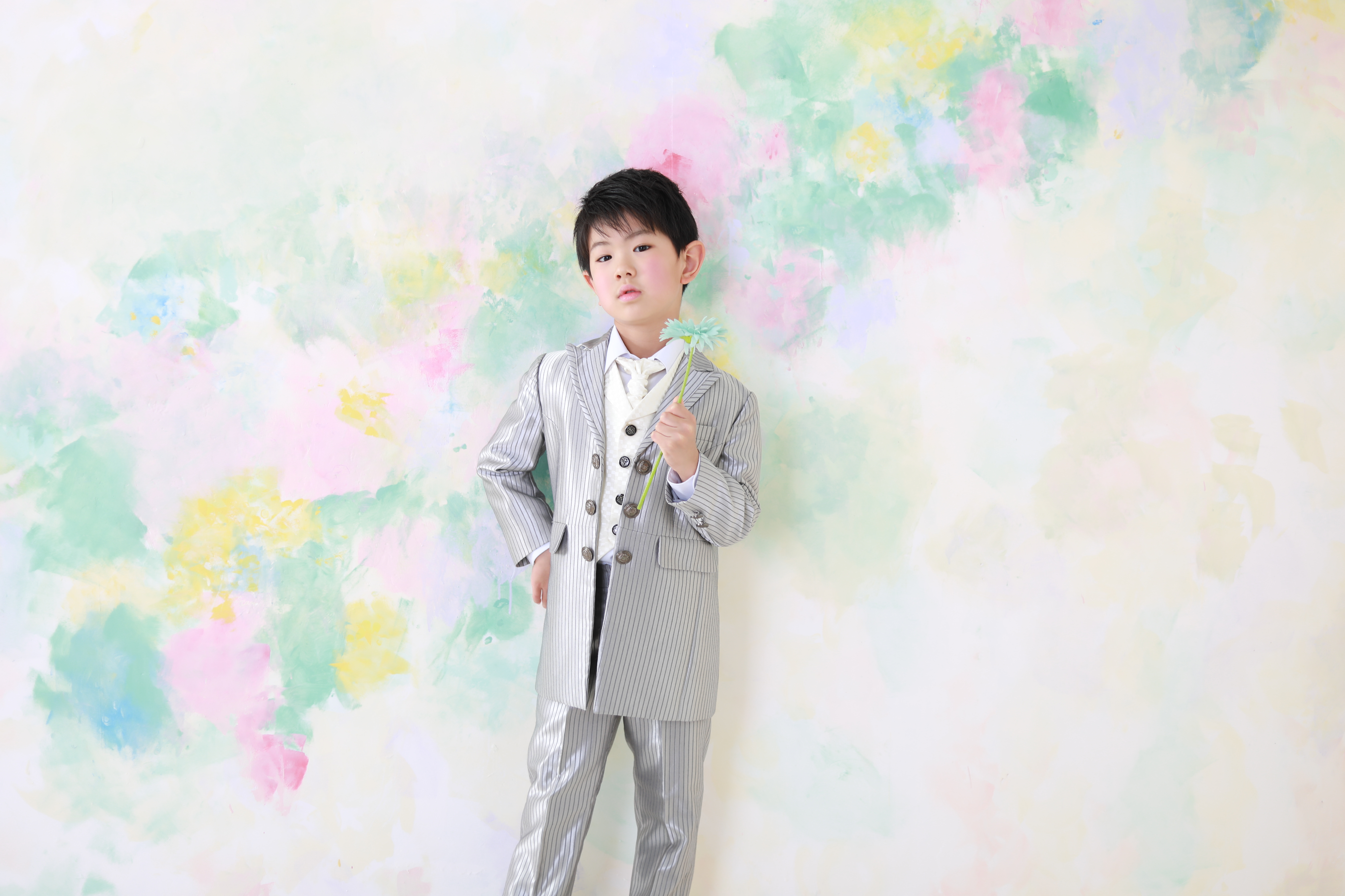 優しい色使いのセット背景なので今流行りのくすみカラーや淡いカラーの衣裳は洋装・和装問わずよく合いますよ。