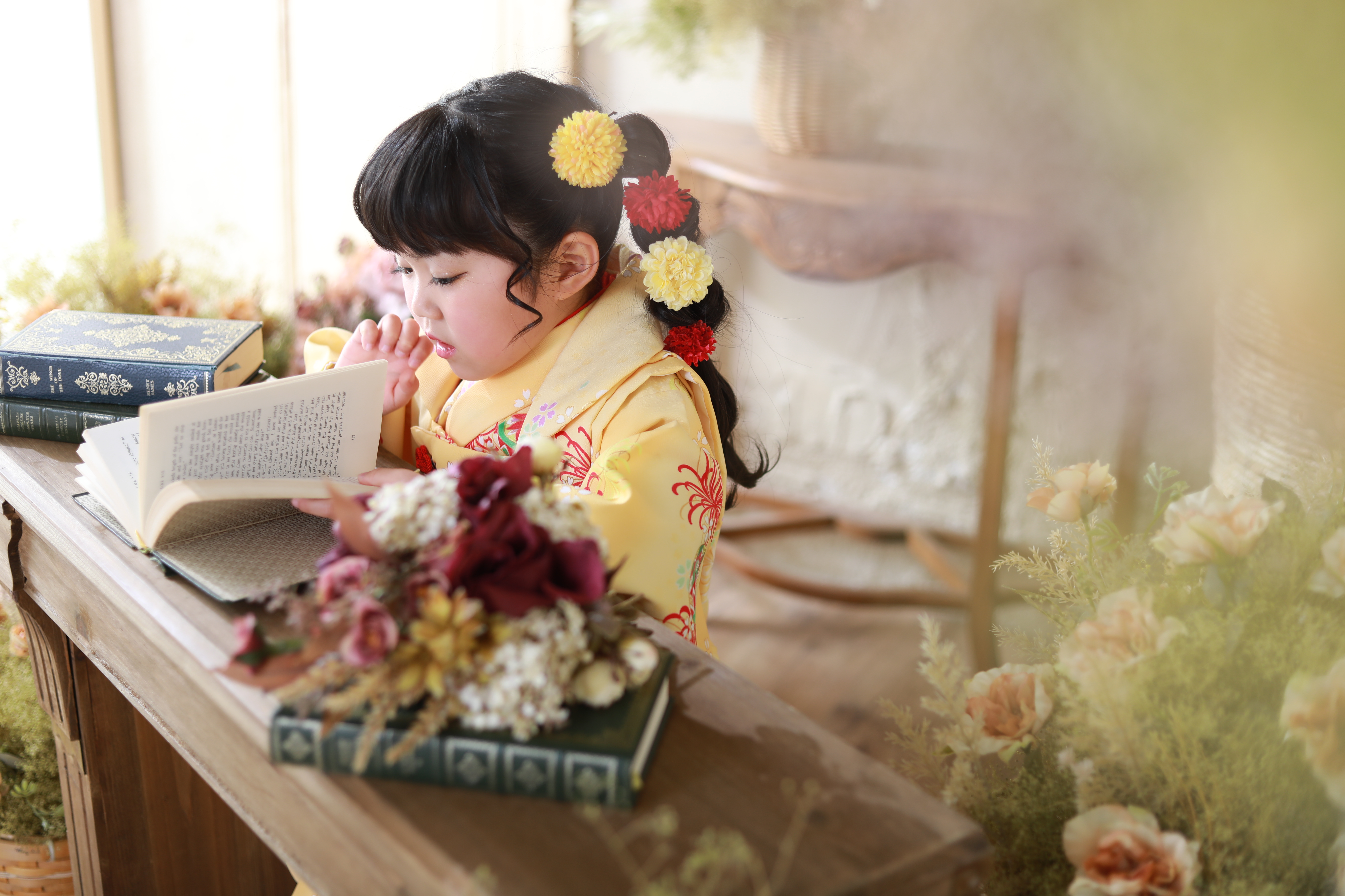 アンティークな雰囲気の小物や花々に囲まれて木漏れ日を浴びているようなライトを入れて撮影を行いますので、ちょっとノスタルジックであたたかみを感じる写真が残せます。