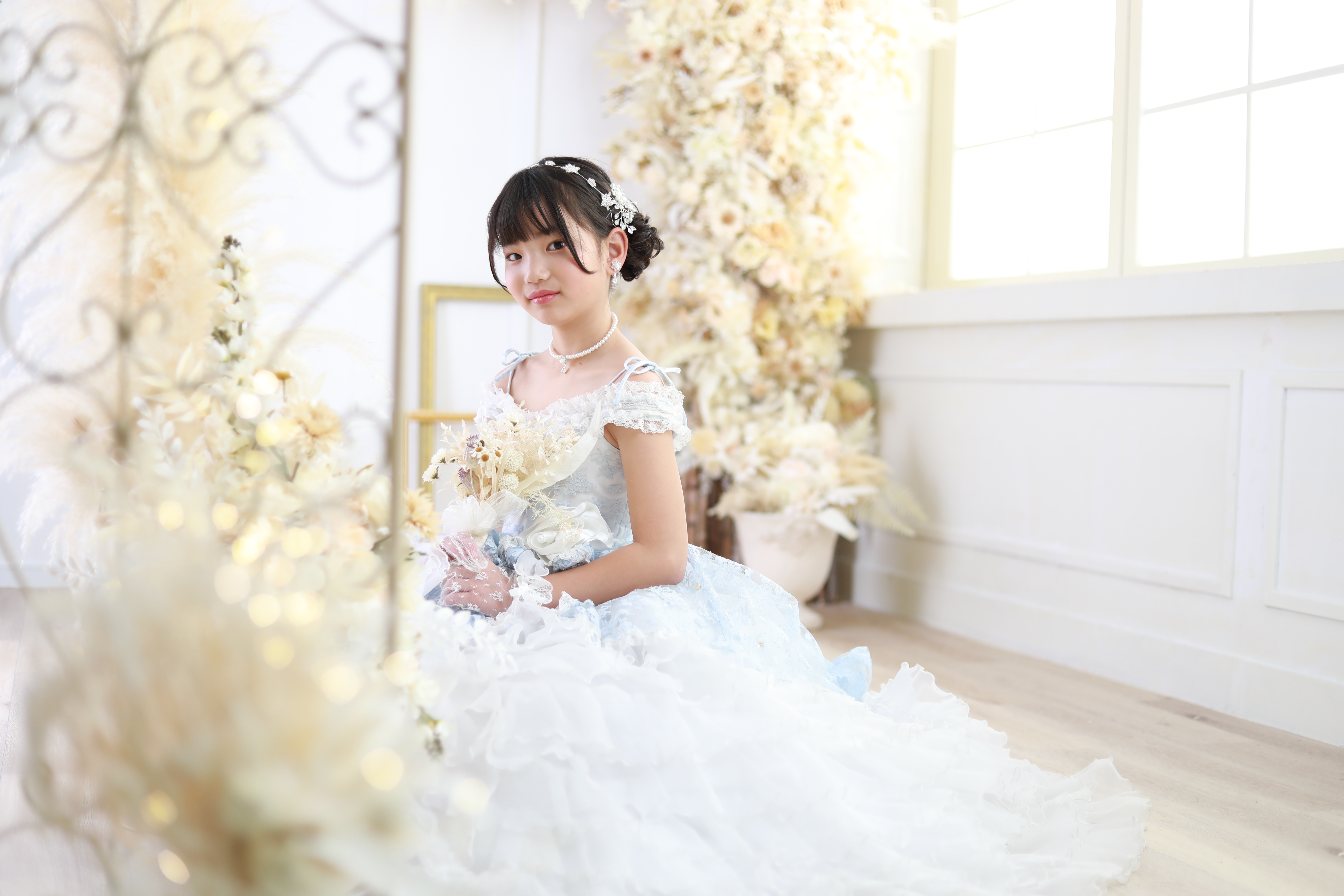 ドレスで七五三前撮り撮影をされた七歳女の子