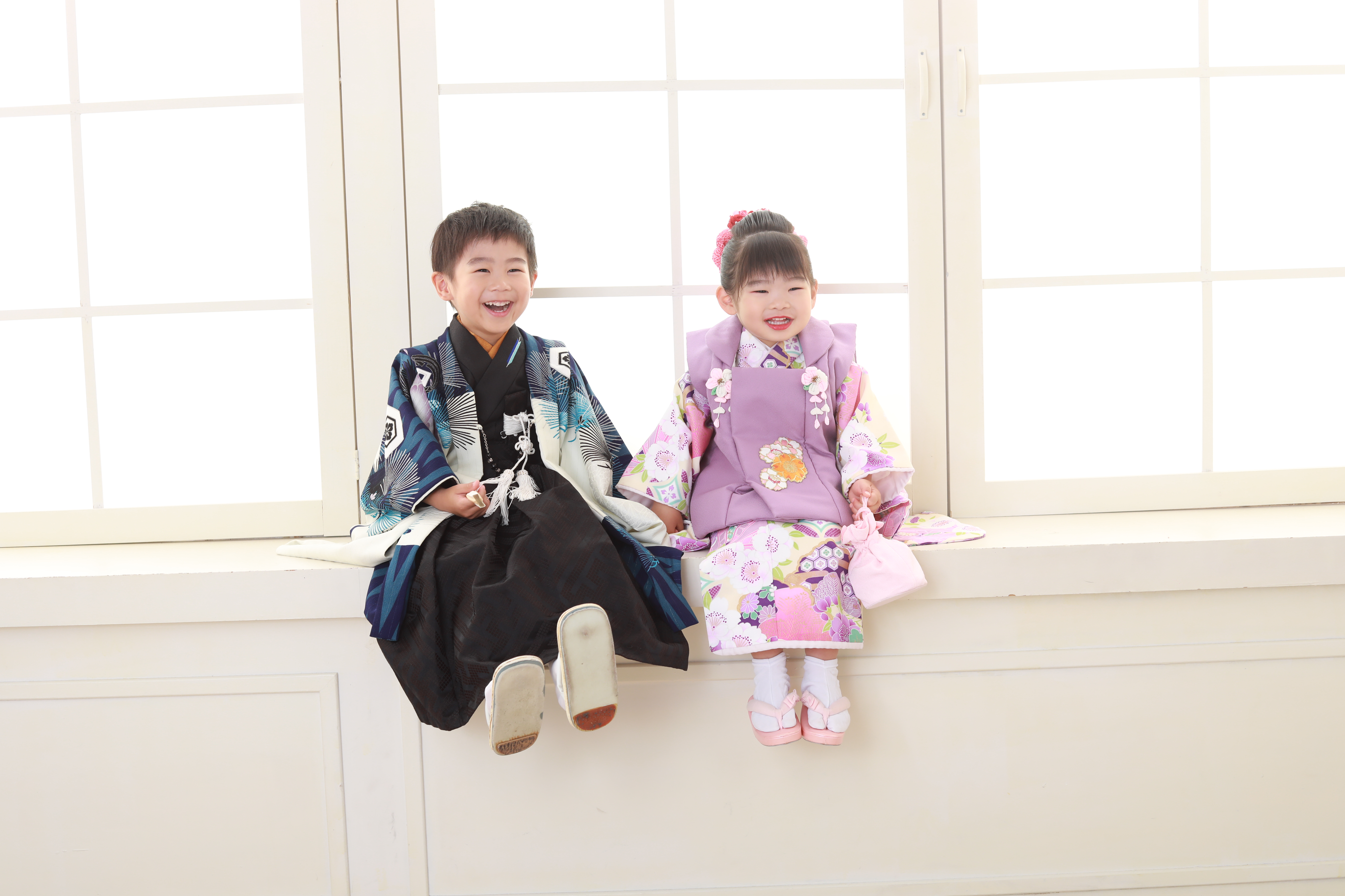 七五三前撮り撮影をされた五歳男の子・三歳女の子の撮影風景