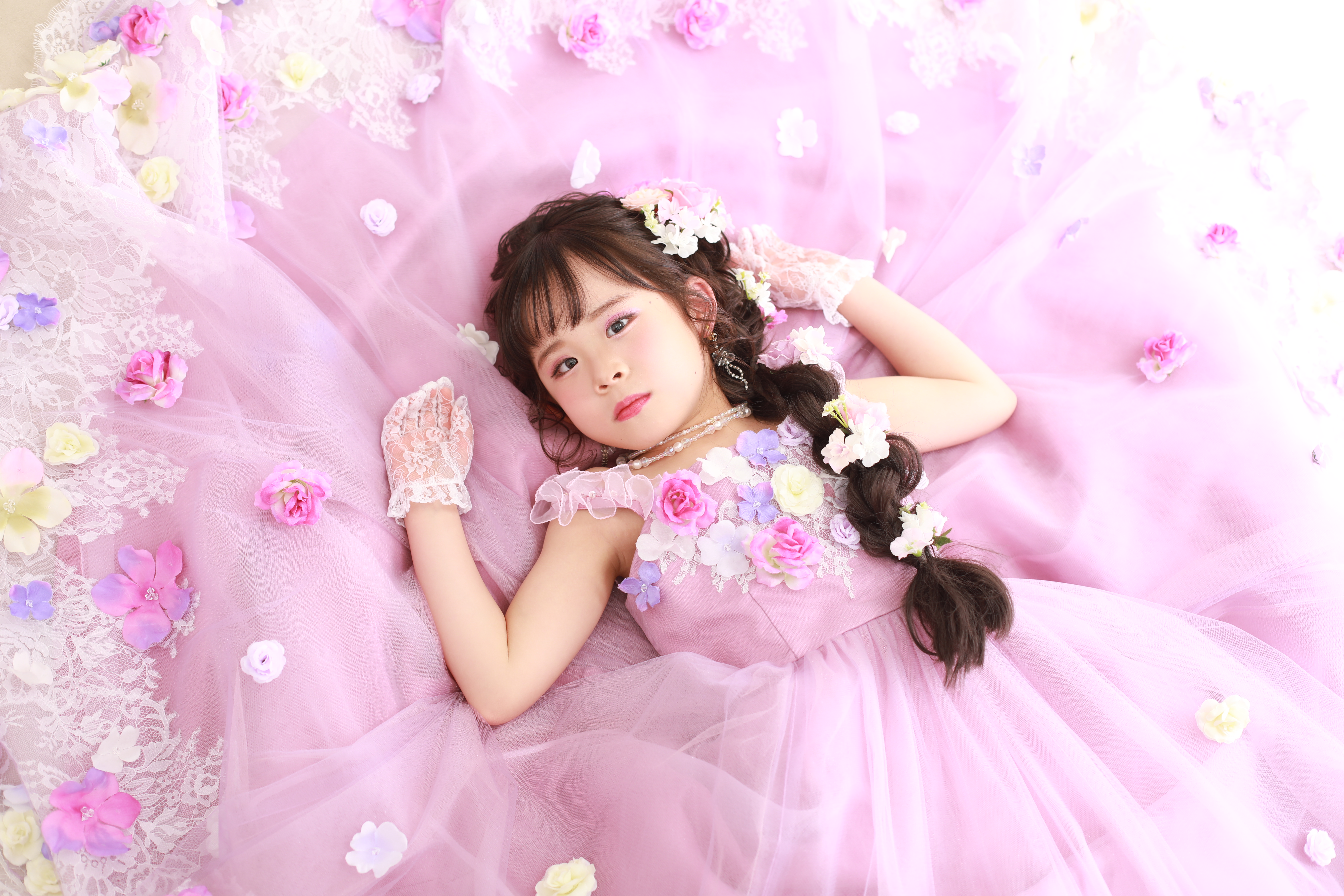 七歳女の子のプリンセス気分を引き立てる可愛さ全開のスタイルから、大人っぽいまとめ髪まで幅広く対応可能です。