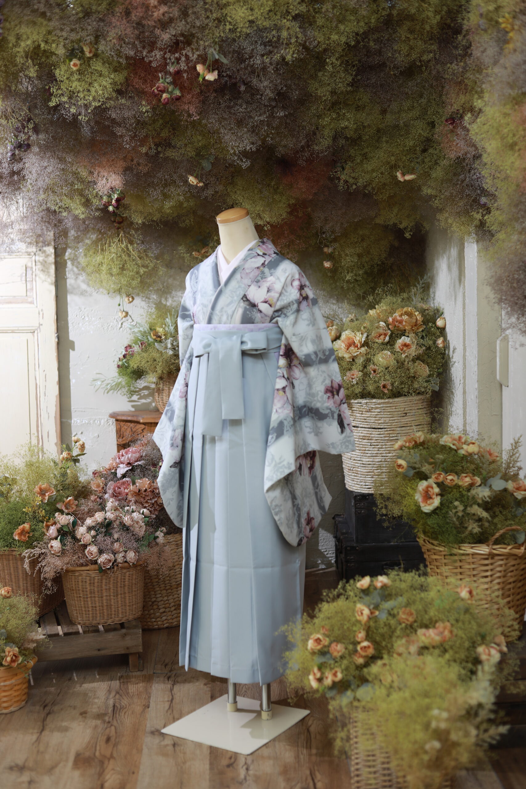 同系色のライトグレー袴と合わせることで全体がより洗練された印象に。
