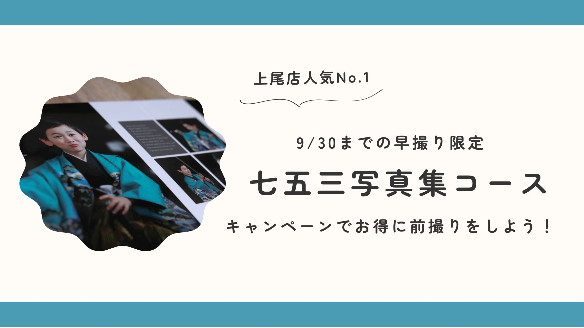 上尾店の七五三前撮り【写真集コース】は夏休み限定の早撮りキャンペーンを活用することで最大限お得にご利用いただけます。
