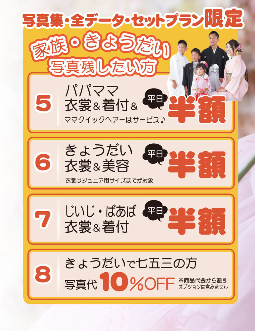 ・きょうだいさんの着物代&着付け代&美容代が半額!