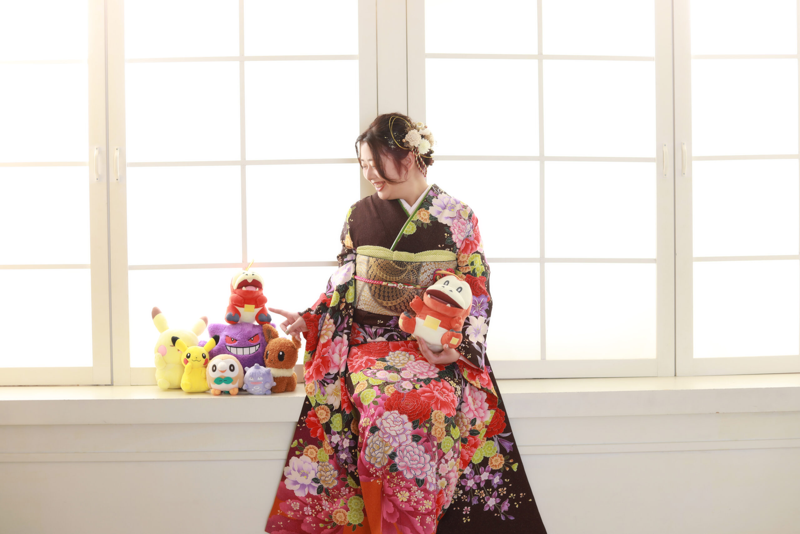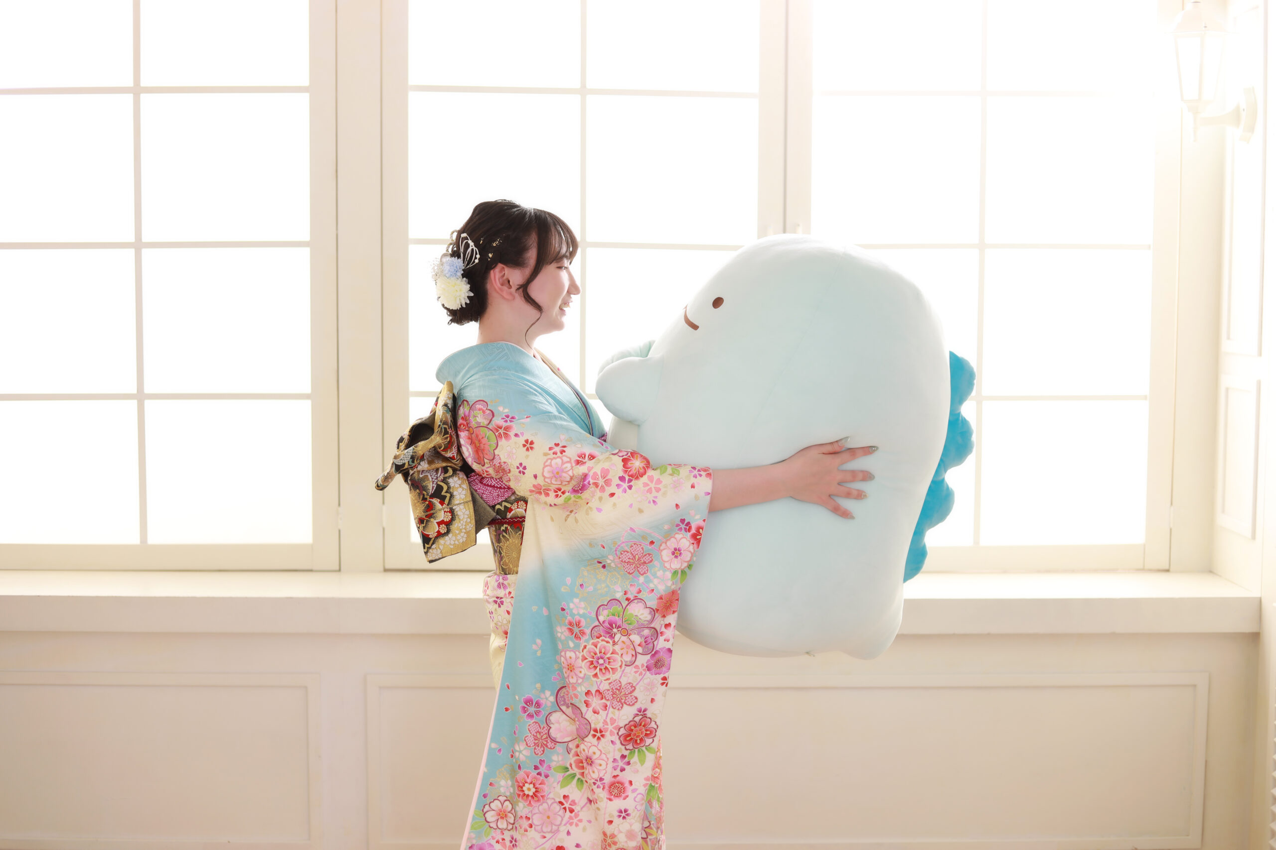特に成人式の前撮りでは 推しのぬいぐるみやアクリルスタンド、キーホルダーなどのグッズと一緒に撮影される方がここ数年でとても増えました。