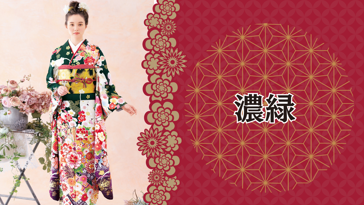 💚華やかさと大人っぽさの共存!目を惹く濃緑色の振袖💚