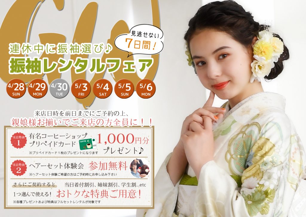 2024.5.1 スタッフブログYoutube深谷店ブライダル成人式男袴七五三お宮参り ■深谷店■GWキャンペーンのご案内■ 最新のお知らせや情報は▷▷ココ◁◁をチェック! こんにちは、深谷店です☺ . 今回は振袖展示会をご案内!!! . 事前に予約すると特典が!!! . 残す所あと4日!! 2025年のお嬢様もまだまだ間に合います!! 気軽にお問合せ下さいm(_ _”m) . ――――――――――――――――――― 各種お問合せ先はコチラをタップ? ?…■LINE■…? ?…■mail■…? ────────────────── 深谷店Instagram毎日更新中✨ check it now★ ────────────────── 振袖レンタルや七五三撮影、結婚写真の撮影ができる写真館を探している方、ぜひ埼玉県深谷市にある写真館スタジオマックス深谷店へお気軽にお問い合わせください。 【会社名】スタジオマックス深谷店 【郵便番号】〒366-0824 【住所】埼玉県深谷市西島町3-3-11 MAXビル1F~2F 【電話番号】048-571-0409 【HP】www.studiomax.jp ────────────────── 前の記事へ 一覧へ 次の記事へ