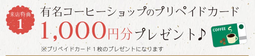 振袖レンタルご予約会の来店の前日までに、事前にご予約して親娘様お揃いでご来店の方全員に有名コーヒーショッププリペイドカード1000円分をプレゼントさせていただきます。