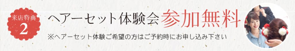 ※ヘアーセット体験会ご希望のお嬢様は、振袖レンタルご予約会申し込み時にお伝え下さい。