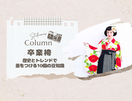 こんにちは、太田店です☺✨ 2026年に卒業式を控える皆様、おめでとうございます🎉 卒業式は人生の門出を祝うだけでなく、実は深い歴史や文化的な意味が込められた衣装が卒業袴なんです。   本日は卒業袴をもっともっと楽しめる豆知識&スタジオ撮影に役立つヒントを太田店が深掘りしてご紹介◎*+ 是非、最後までお付き合いください♪     1.袴スタイルを生んだ"女学校"と"文明開化"の時代背景 卒業袴が定番化したのは、文明開化が進む明治時代。 特に上流階級の子女が通う女学校からなんです!   【着物から袴への移行の理由】 当時の女学生は、長い着物の裾をたくし上げて歩く必要がありましたが、袴は機能性に優れ、活動しやすかったようです。 そのため、新時代の女性の活動的な生活を象徴するようになりました!   【ブーツは必須アイテムだった?】 実は袴にブーツを合わせるスタイルも、この女学生の時代から始まっています! 当時の女学生は、洋装であるブーツを履くことで、西洋の進んだ文化を取り入れているというモダンさを表現しました。 これは単なる流行ではなく、知性や自立の象徴でもあったもののようです。       2.定番模様の"矢絣(やがすり)"の知られざる意味 卒業袴の柄として圧倒的な人気を誇る矢絣柄には、実は深い願いが込められています☺ その願いは…卒業生への究極のエール!!! 矢絣柄は、弓から射られた矢がまっすぐ飛んで戻らないことから、「出戻らない」という意味で嫁入り道具に使われました! これを卒業式で着ることは「迷わずまっすぐ、目標に向かって進んでいきなさい」という、人生の門出に立つ卒業生への最高の応援メッセージとなります!   3.「二尺袖」の長さはなぜ袴に最適なのか? 卒業袴とセットで着られることが多い「二尺袖(にしゃくそで)」の袖の長さには、実用的な理由があります。   振袖を避ける実用的な理由は…… 袖が長すぎる振袖は、お茶を出すときや机に向かうときに邪魔になります。 また、袴の中に裾を入れると着膨れしやすいというデメリットも…。 二尺袖は、袖の長さが約76cm(二尺)と程よく短く、活動しやすさと華やかさのバランスが最も優れているため、卒業式に選ばれるようになったのです🌸     4.袴の「ひだ」が表す日本の精神性 袴にある五つのひだ(襞)には単なる飾りではない、武士の精神から受け継がれた意味があります。 少し難しいお話になりますが… 武士の袴のひだは仁・義・礼・智・信という儒教の教えを表していると言われます。 卒業という節目に、これらの道徳心を改めて胸に刻んで社会へ羽ばたいてほしいという願いが込められています◎       5.スタジオ撮影で活かす袴の色は? 卒業袴で前撮り写真や後撮り写真で袴姿をより美しく見せるためにも、色選びはとても大切なものです! カメラマン目線で少し解説していきます☺   まず… ・紺/緑系の袴……知的で落ち着いた印象になります! ・赤・ピンク系の袴……可愛らしく華やかな印象に*+ ・紫系の袴……大人っぽさと上品さのバランスいい袴です!   着物から選ぶことが多い袴ですが、実は全身の三分の一が袴が占めます。 なので是非、袴から選んでみてはいかがでしょうか?       6.今どきのトレンドの着こなし 伝統的な袴スタイルも素敵ですが、現代のトレンドを取り入れる方が多くいらっしゃいます。 現代のトレンド×個性で自分だけのスタイルを探してみましょう♪   今期のトレンドは…… ◆レースやフリル◆ 着物の下に着るレース付きのインナー(レースのつけ衿など)や、袖口からちらりと見えるフリルを着用。 袴姿に洋風の甘さを加え、一気にモダンな印象に☺   ◆編み上げブーツ◆ 袴×ブーツは、明治時代のリバイバル!  特に編み上げブーツ+5㎝~ヒールは足元を引き締め、スタイルアップ効果も抜群!! 足元まで気を配ってみましょう。   ◆無彩色◆ いまだに強い無彩色トーンコーデ。 くすみ系~モノトーンでまとめて、髪型や飾り、バッグで回りを差をつける方も。       7.袴の下の着付けの秘密「半幅帯」のおしゃれ 袴を着付ける際に、隠れてしまう帯にもこだわりのポイントが✨   着物と袴の境界線にあって見えるのは半幅帯という細い帯。 差し色の半幅帯を合わせるのが定番でしたが、この少ししか見えない半幅帯も個性的にアレンジ。 パールやレースをあしらったものや、ストライプや金糸の刺繍が入ったものなど様々。 少ししか見えない部分ではありますが、こだわってコーデしてみましょう☺       8.卒業袴と髪飾りのバランス 袴姿を完璧にするには、髪飾りのボリューム感が最重要!!!!!!! 着物が華やかな柄の場合、髪飾りは小ぶりにして上品にまとめるのがおすすめ 逆に、今流行りのシンプルな着物を選ぶ場合は、大ぶりの花飾りやリボンで顔周りを華やかにするとバランスが取れます☺ ハーフアップに生花をあしらうスタイルも、今期の人気のトレンド🎀         卒業袴:Q&A 最後に、卒業袴に関する知っておくと楽しい「へぇ!