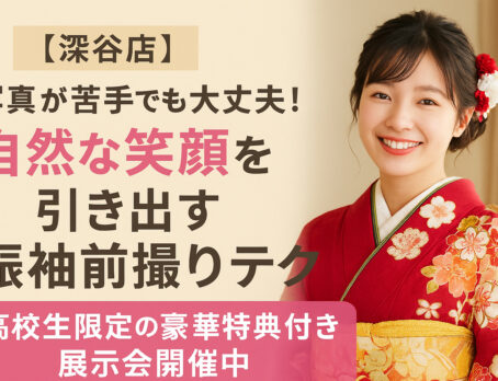 【深谷店】写真が苦手でも大丈夫!自然な笑顔を引き出す振袖前撮りテク&高校生限定の豪華特典付き展示会開催中