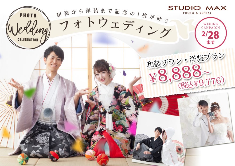 2022.1.31 お知らせ 深谷店 キャンペーン 上尾店 太田店 店鋪 【2月28日まで】☆写真で結婚式☆平日限定9,776円キャンペーン♪ 結婚の写真だけ残したい方へ♡ 結婚式は洋装なので和装の写真を残したい方へ♡ 年賀状用に結婚写真を使用したい方へ♡ 和装から洋装までお得に撮影できるウエディングフォトプラン♪2022年2月28日まで! 平日限定9,776円プランや全データプラン、アルバムプランが20%OFFなど様々な特典をご用意しています。 前の記事へ 一覧へ 次の記事へ
