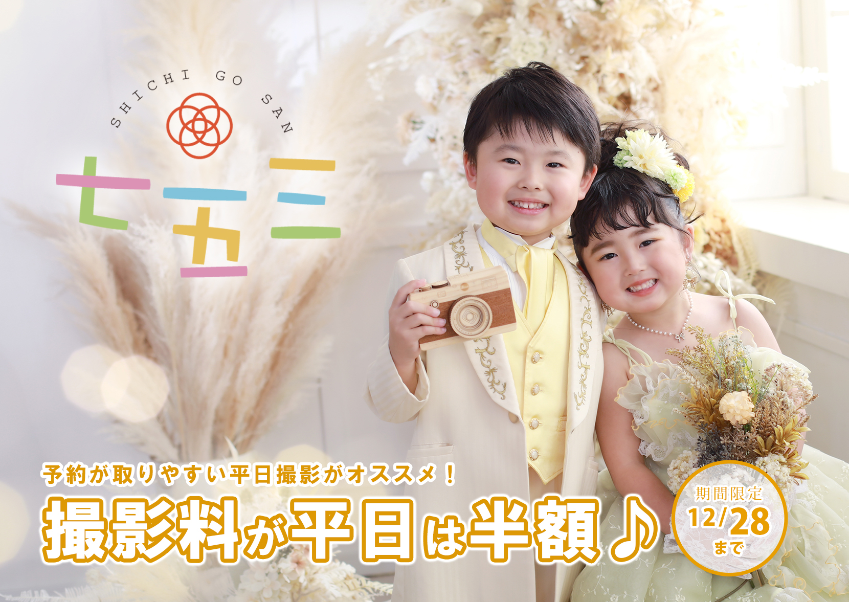 2024.11.30 お知らせ 深谷店 キャンペーン 上尾店 太田店 おすすめ情報 店鋪 七五三キャンペーン!【12月28日まで】 スタジオマックス恒例の七五三キャンペーン(^▽^)/ キャンペーン内容は『撮影料平日半額』です!! 平日は予約がとりやすく、ゆっくり撮影いただけます。 お子様の冬休みに合わせていかがですか? キャンペーン期限は2024年12月28日まで♪ 七五三撮影・プランについてはお気軽にお問い合わせ下さい! 他の七五三メニューはこちら お問合せ・ご予約はこちら 前の記事へ 一覧へ 次の記事へ